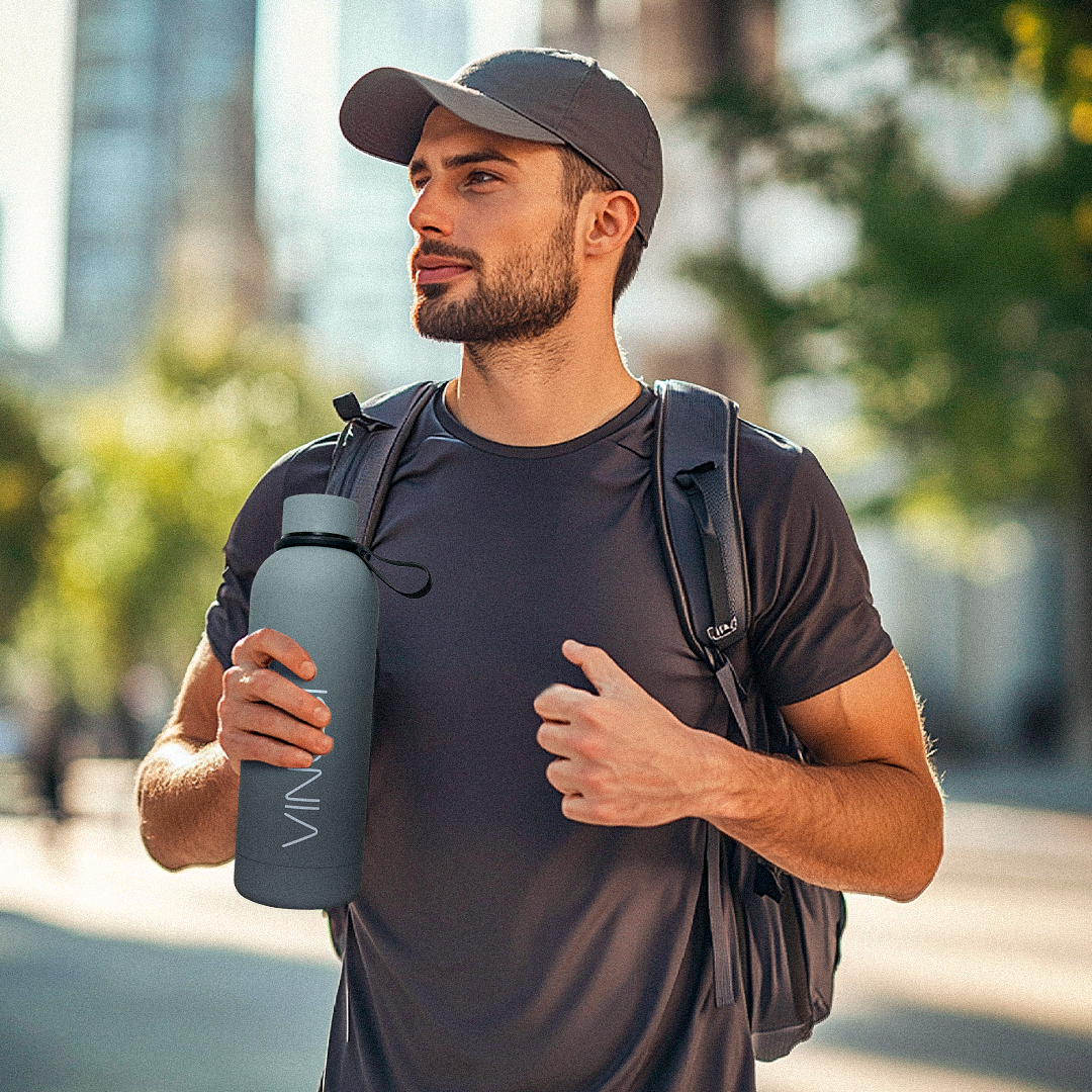 Disponíveis em quatro cores elegantes – Verde Espacial, Verde Aquático, Preto Ónix e Cinzento Grafite –, cada garrafa é um complemento distinto para o teu dia-a-dia.